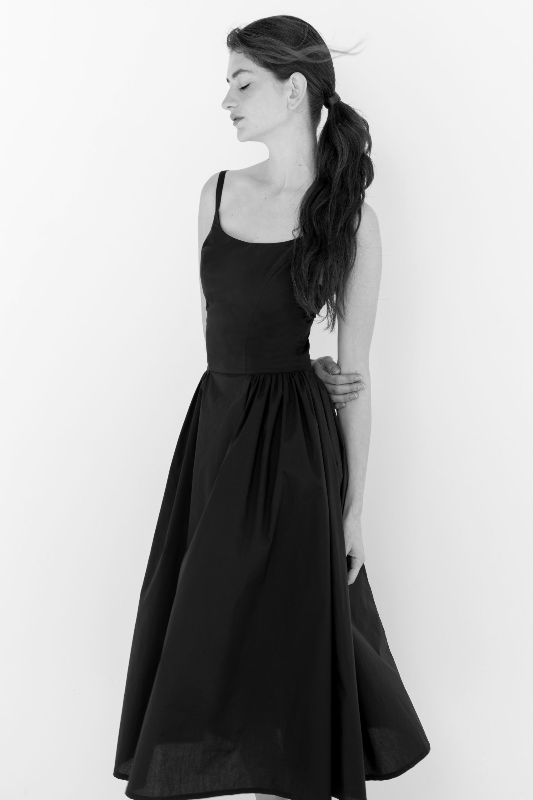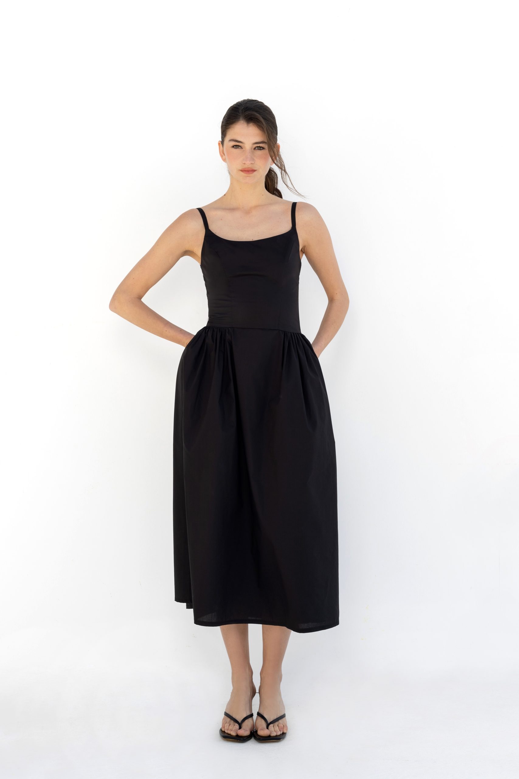 Designed with functional side pockets and a discreet back zipper, the Iris dress balances practicality with minimal sophistication. Its understated aesthetic allows it to transition seamlessly from daytime wear to evening occasions.